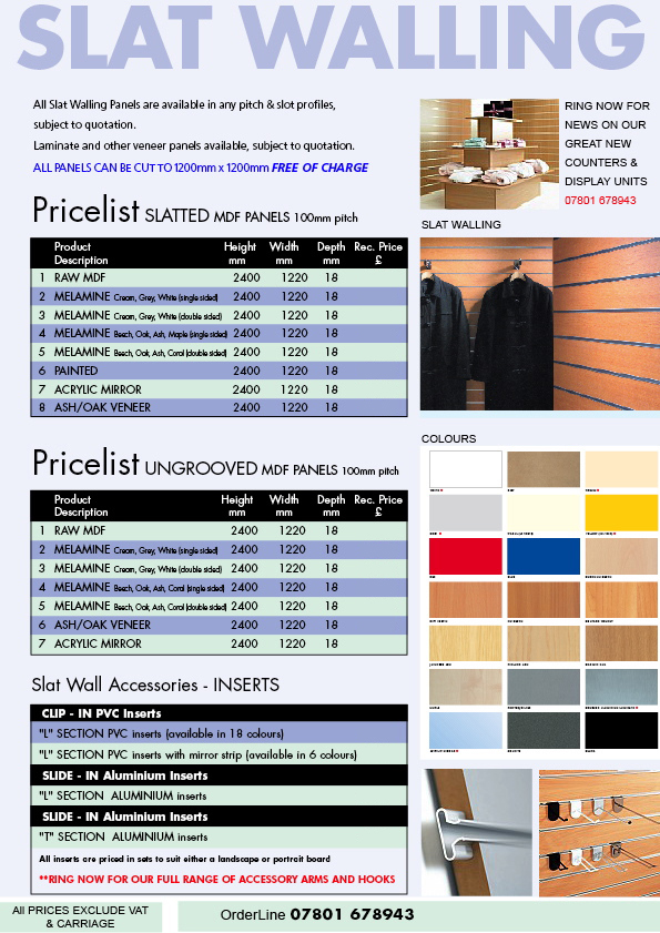 Smith Rodgers produces a full range of slat wall, inserts, accessory arms, shelving & hooks.